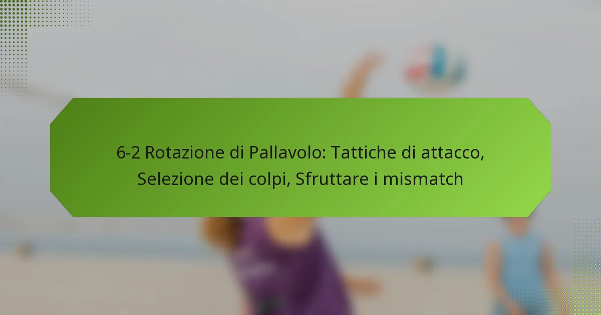 Sfruttare i mismatch nella rotazione 6-2 del volley implica identificare rapidamente e mirare ai difensori più deboli mentre si adattano le posizioni dei giocatori per massimizzare l’efficacia offensiva. Analizzando i punti di forza e le debolezze degli avversari, le squadre possono creare situazioni vantaggiose che portano ad attacchi di successo.